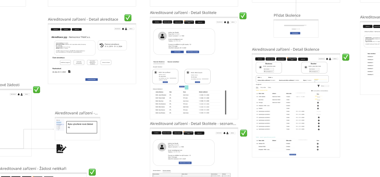Z rozhovorů s budoucími i stávajícími absolventy a klíčovými akréry z nemocnic vyplynulo, že musíme řešení vnímat jako širokou platformu, která obslouží potřeby všech uživatelských stran napříč systémem. Administrátor tak musí zvládat schvalování akreditací od pracovníků MZČR, zdrav. zařízením umožnit sledovat agendu školenců, nebo usnadňovat fakultám správu kurzů.