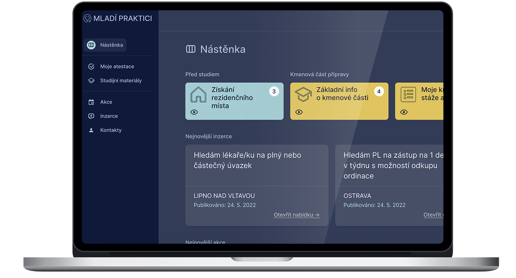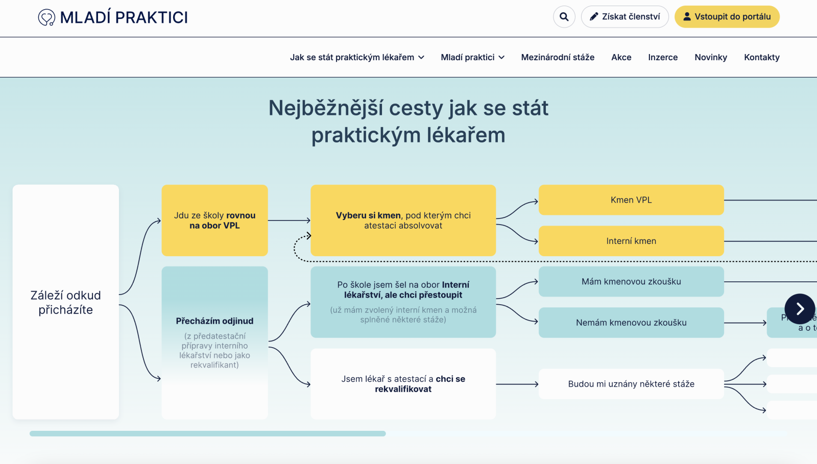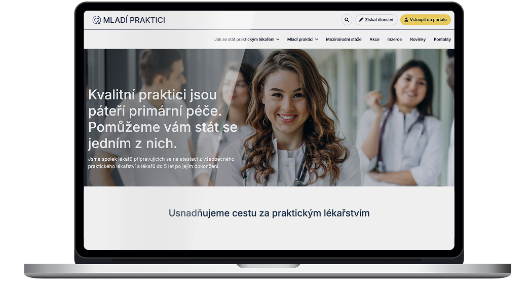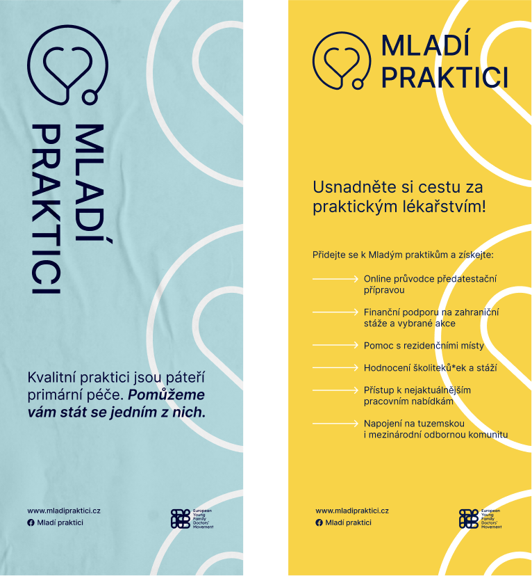 2/ Posílili jsme brandovou komunikaci: Oblékli jsme Mladé praktiky do nového vizuálního hávu a navrhli pro ně a informačně výživný ale přehledný web. Zájemci o všeobecné lékařství se tak ve chvíli dozví jak funguje atestace nebo kdy si podat přihlášku do oboru.